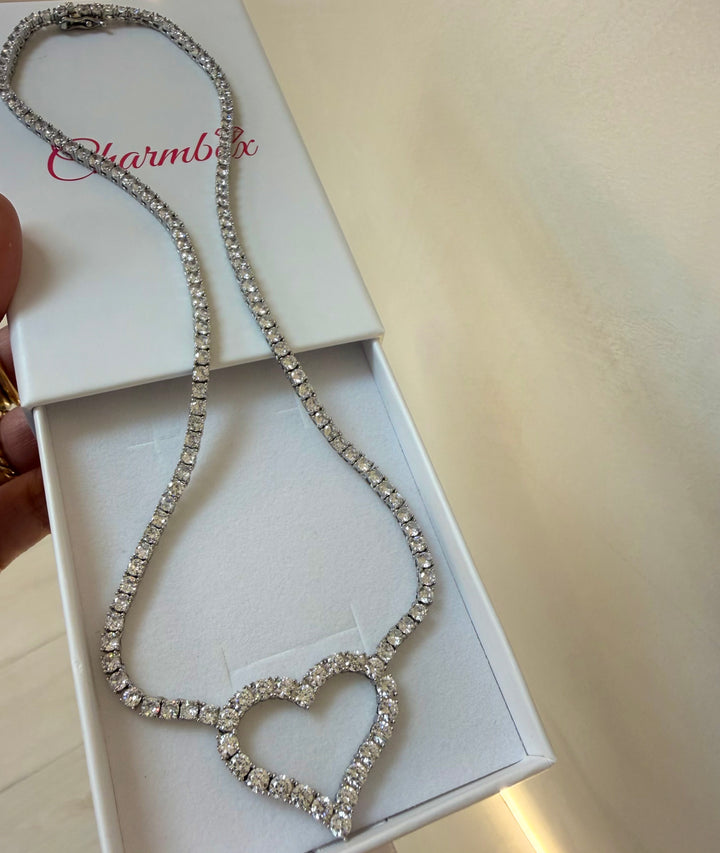 • Design: A sleek tennis chain paired with an open-heart centerpiece for a refined but playful look.